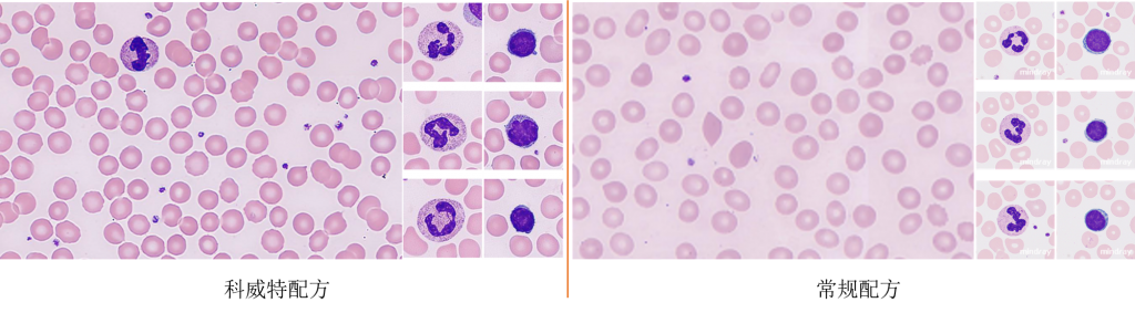 • 使用BASO瑞氏-姬姆萨染液(P/N: BA4017MA / BA4017MB,下单备注科威特配方),与常规染液效果对比如下图。